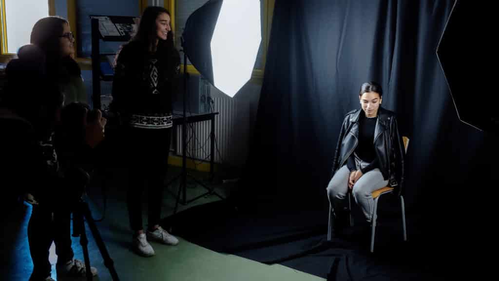 Deux séances dédiées aux portraits des élèves ont été mises en place afin d’appréhender l’appareil, le regard des autres, dans le respect des envies de chacun.e. Tous se sont prêtés au jeu, d’un côté et de l’autre de l’appareil et avec plus ou moins d’aisance. Il est nécessaire de respecter la personnalité de chaque jeune, certain(e)s plus exubérant(e)s et à l’aise face à l’objectif, d’autres plus inhibé(e)s. Les jeunes sont aussi bien auteurs, qu’acteurs.